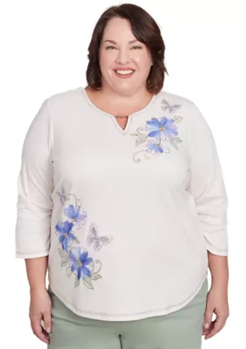Plus Santa Fe Asymmetric Floral Embroidery Top