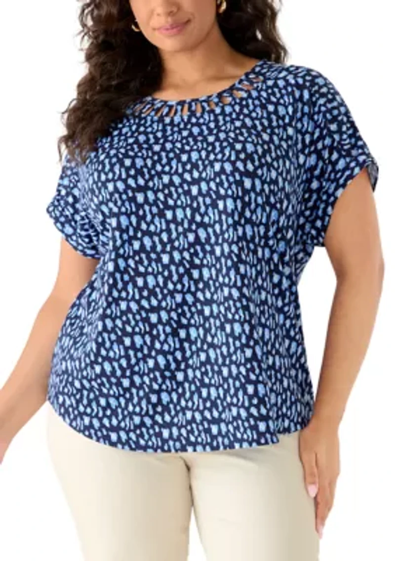 Plus Short Sleeve Lattice Neck T-Shirt