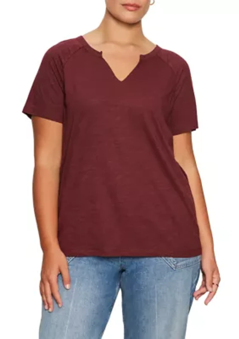 Experience ultimate comfort and effortless style with this versatile t-shirt from Sanctuary. Crafted from a soft cotton and rayon blend, it offers a relaxed fit and flattering split-neckline. The short dolman sleeves provide a touch of sporty elegance, making it perfect for everyday wear. Whether you're running errands or relaxing at home, this t-shirt will keep you feeling comfortable and looking chic. Pullover Split neck Short dolman sleeves Unlined Imported Product Specifications Front: 27" L; Bust: 44" L; Sleeve: 15.75" L Material & Care Cotton, rayon blend Machine washable