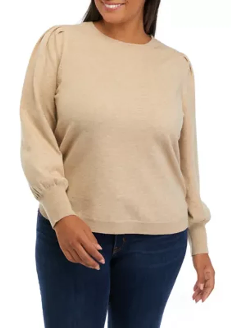 Billowy sleeves with gathered shoulders and an all-over striped print collide to form this chic cold-weather-ready sweater from Crown & Ivy™. Pullover Crew neck Long sleeves with gathered shoulders Unlined Imported Belk Exclusive Product Specifications 29.5" L Material & Care Rayon blend Machine washable