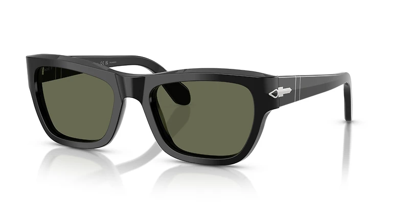 The PO0091S sunglasses by Persol embody timeless Italian craftsmanship, offering a glamorous edge with their butterfly-shaped frames in sleek black acetate. The polarized green lenses enhance clarity and contrast while reducing glare, ensuring effortless viewing even in challenging light conditions. Designed with full-rim acetate temples for premium comfort, these iconic black sunglasses provide 100% UVA and UVB protection—blending bold vintage elegance with extraordinary performance.