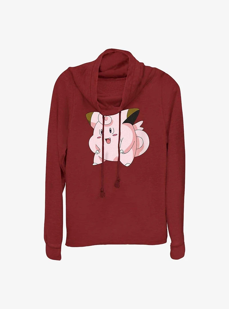Pokemon Clefairy Pose Cowl Neck Long-Sleeve Top