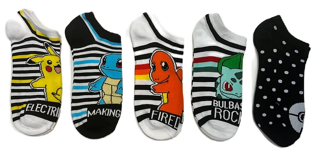 Pokemon Kanto Starters Striped Ankle Socks 5-Pack