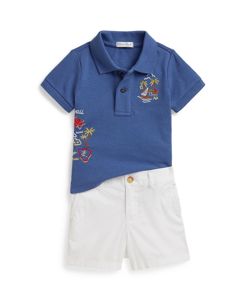 Polo Ralph Lauren Baby Boys' Embroidered Mesh Shirt and Shorts, 2-Piece Set