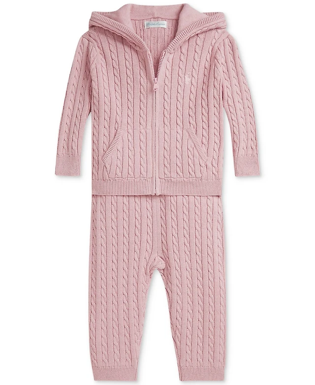 Polo Ralph Lauren Baby Girls 2-Pc. Mini Cable-Knit Hoodie & Pant Set