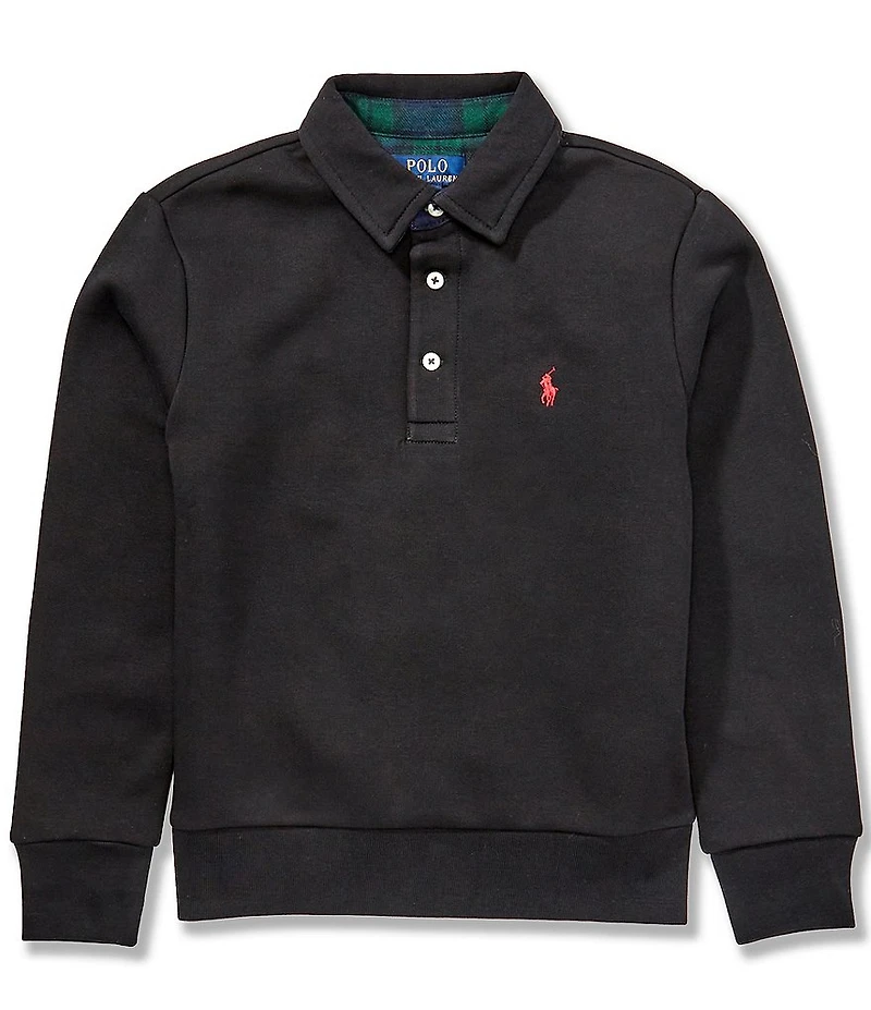 Polo Ralph Lauren Big Boys Long-Sleeve Polo-Collar Plaid-Trim Fleece Sweatshirt