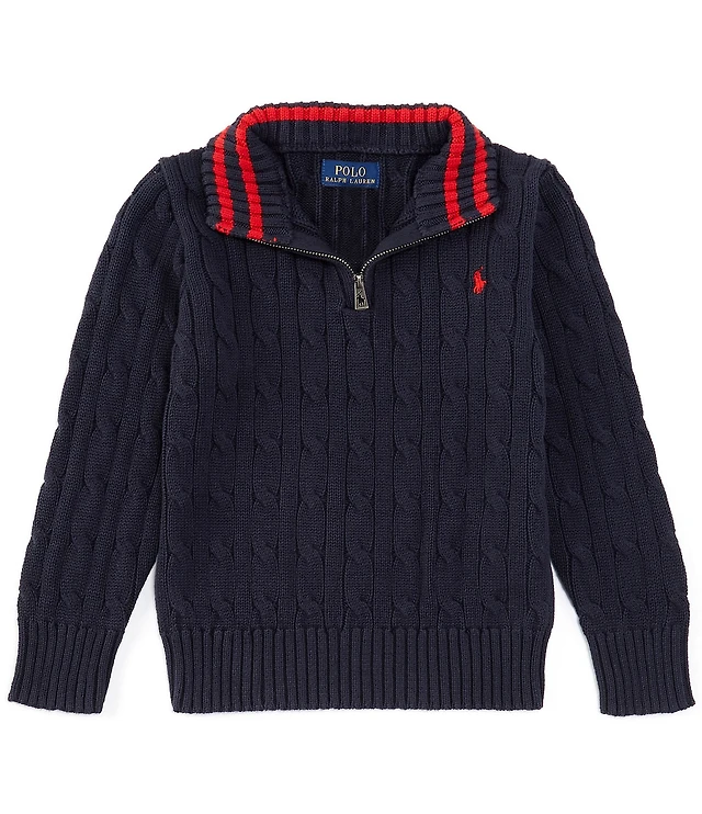 Polo Ralph Lauren Big Boys Long Sleeve Quarter-Zip Cable-Knit Sweater