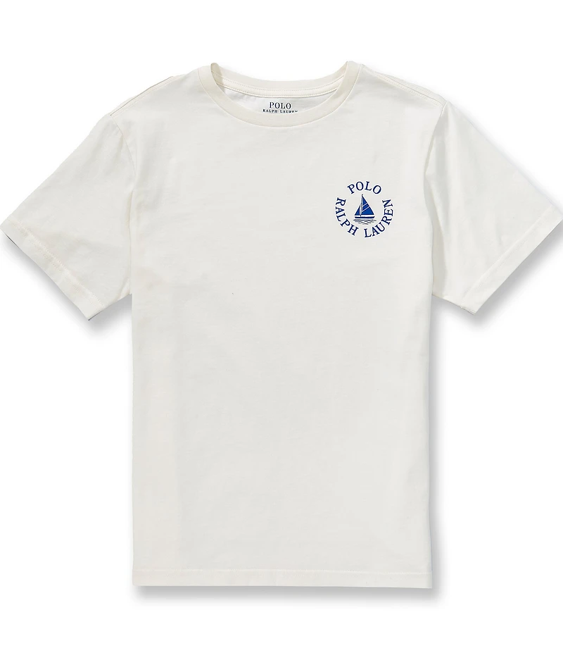 From Polo Ralph Lauren, this t-shirt features: Crew neckline Short sleeves "Polo Ralph Lauren" logo and a sailboat printed on the left side of chest Pullover construction Cotton jersey Machine wash/tumble dry Imported.
