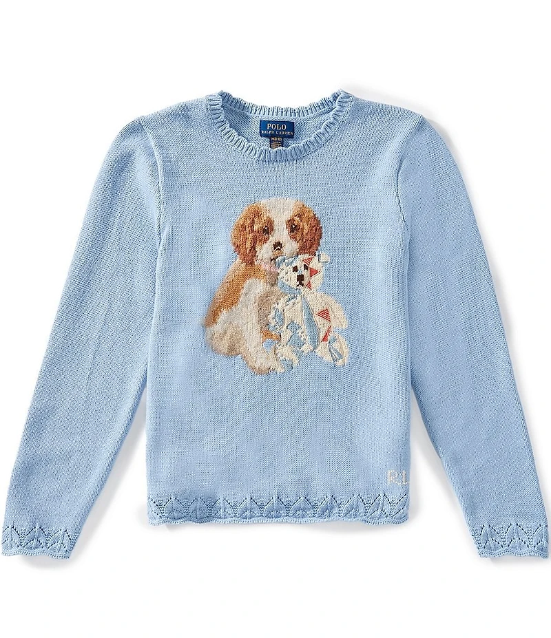 Polo Ralph Lauren Big Girls Long-Sleeve Scalloped-Crewneck Dog Sweater
