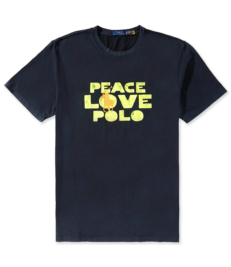 From Polo Ralph Lauren, this T-shirt features: “Peace Love Polo” and signature pony printed at the center front Classic fit Crew neckline Short sleeves Pullover styling Cotton jersey Machine wash/tumble dry Imported.