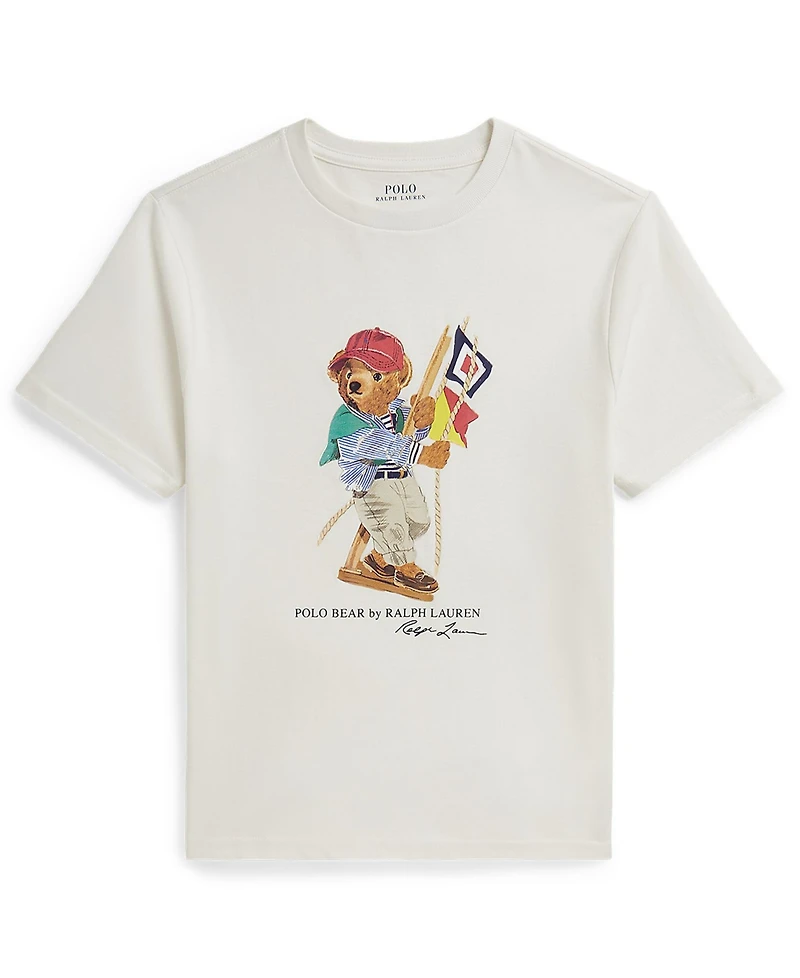 Seasonal storytelling comes to life in this Polo Ralph Lauren T-shirt, featuring the iconic Polo Bear on a sailing adventure. A crewneck and short sleeves keep it easy and comfortable.