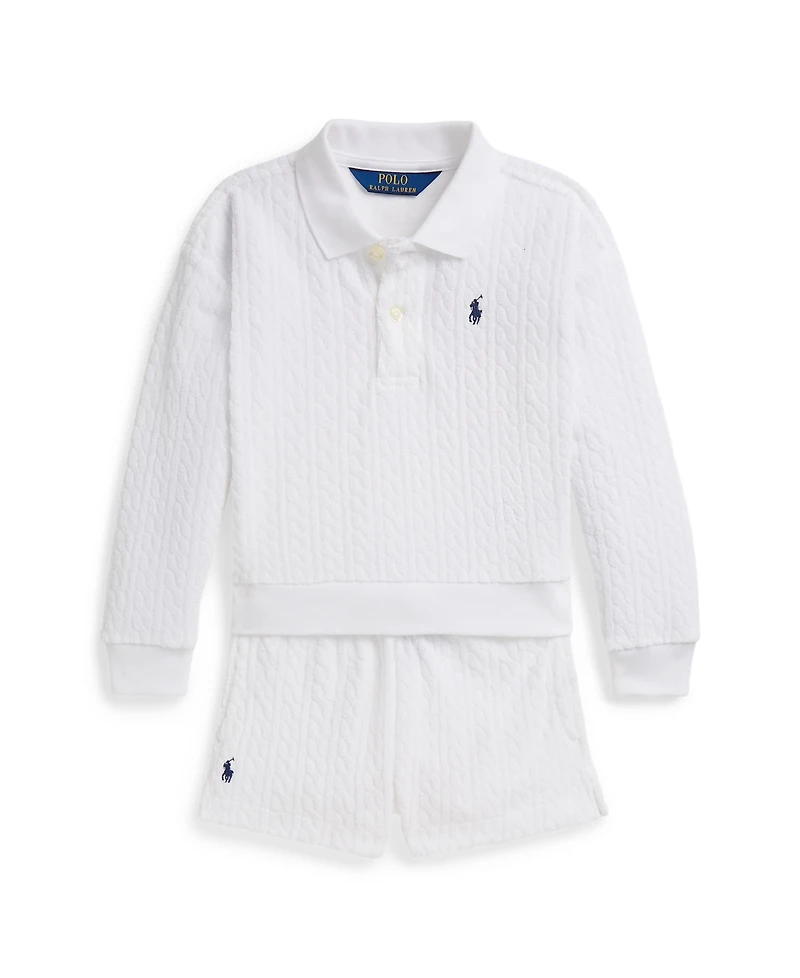 Polo Ralph Lauren Girls' 2-6X Mini-Cable Terry Shirt & Shorts, 2-Piece Set