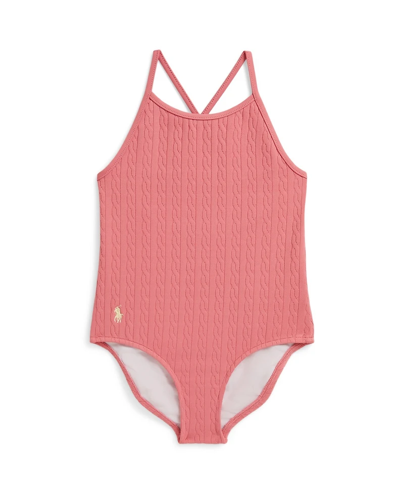 Polo Ralph Lauren Girls' 2T-6X Mini-Cable Jacquard Round Neck One-Piece Swimsuit