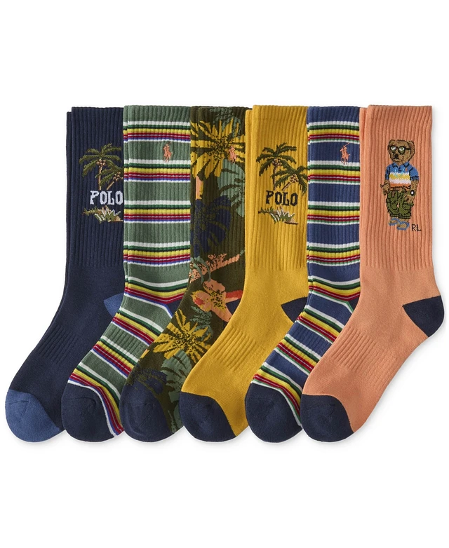 Polo Ralph Lauren Men's 6-Pk. Rl Surf Club Bear Crew Socks