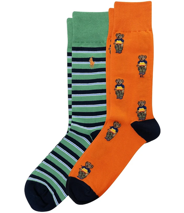 Polo Ralph Lauren Men's Polo Society Mini Bear Crew Socks, 2-Pack