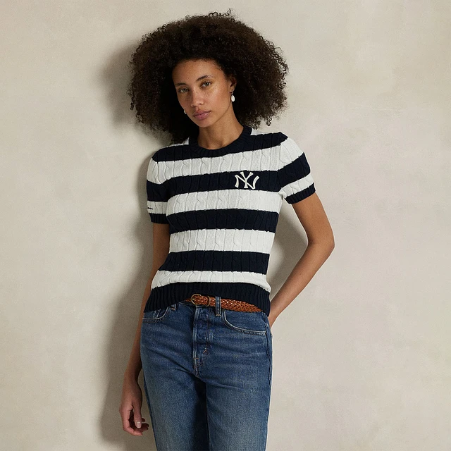 Polo Ralph Lauren Navy/White Yankees Short Sleeve Cable Knit Sweater