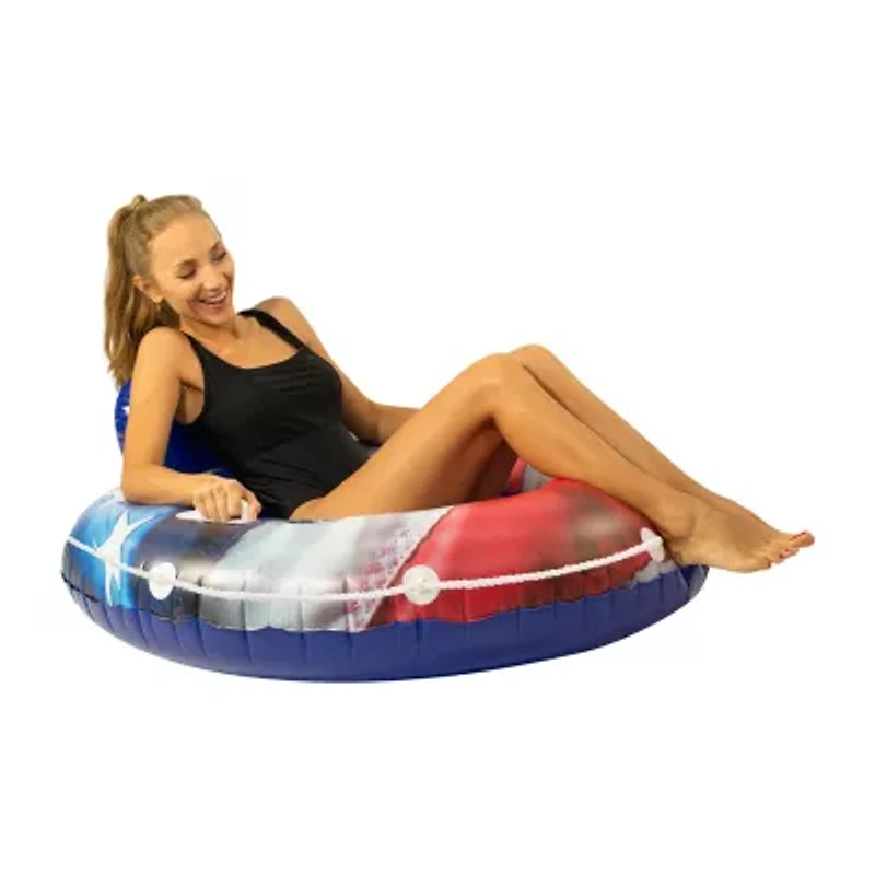 The ultimate freedom float! Take a ride down the river on the heavy-duty stars & stripes river tube from Poolcandy. Nothing goes together better than the stars & stripes and summer on the river! This extra-large 48" tube features a mesh seat, backrest, a big cupholder and a utility rope around the outside. All you need now is a shady spot on the river and a cold beverage, and you're living the American dream!