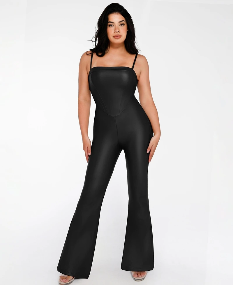 The Popilush Shapewear Faux Leather Corset Bodice Slimming Jumpsuit is a striking combination of style and function. Designed to sculpt your curves, its sleek tailored fit and delicate thin straps bring an air of elegance and femininity.
