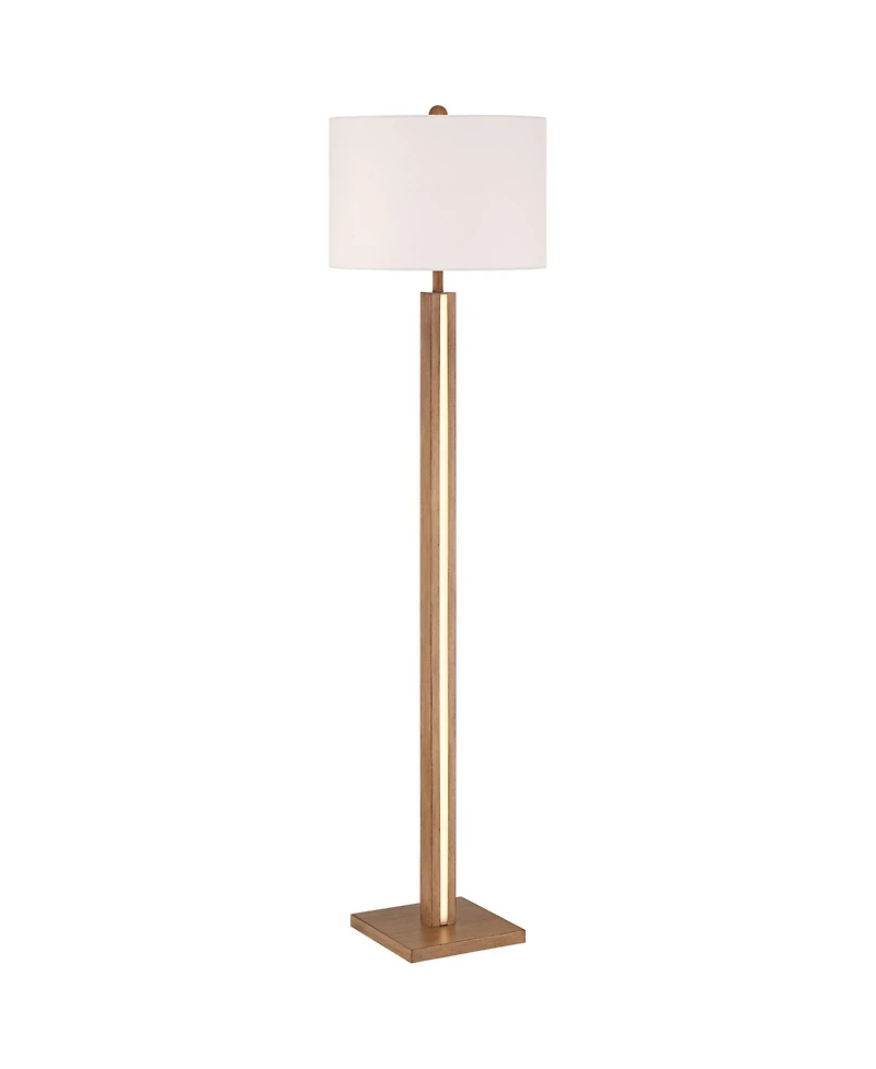 Combining natural inspiration with contemporary technology, the Brookline floor lamp gracefully balances the multiple decor styles. A faux wood oak finish base and column creates a design element inspired rustic farmhouse design, with a single bright bulb diffused by the white fabric drum shade. An integrated Led strip runs from top to bottom along the column, adding soft mood lighting to your space. This floor lamp is controlled by a four-way rotary socket switch, allowing you to turn on the top bulb, the Led strip, or both at once.