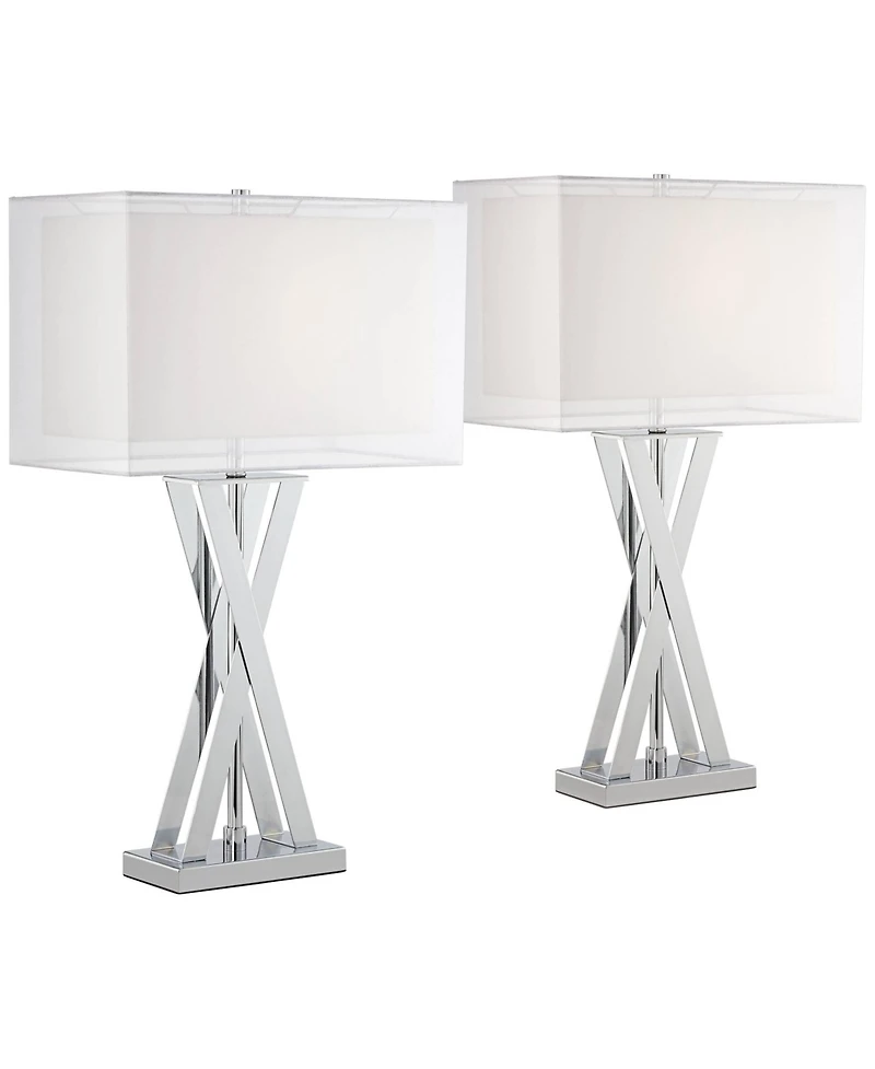 Possini Euro Design Proxima 28" Tall X-Shaped Modern Table Lamps Set of 2 Silver Chrome Finish Metal Living Room Bedroom Bedside