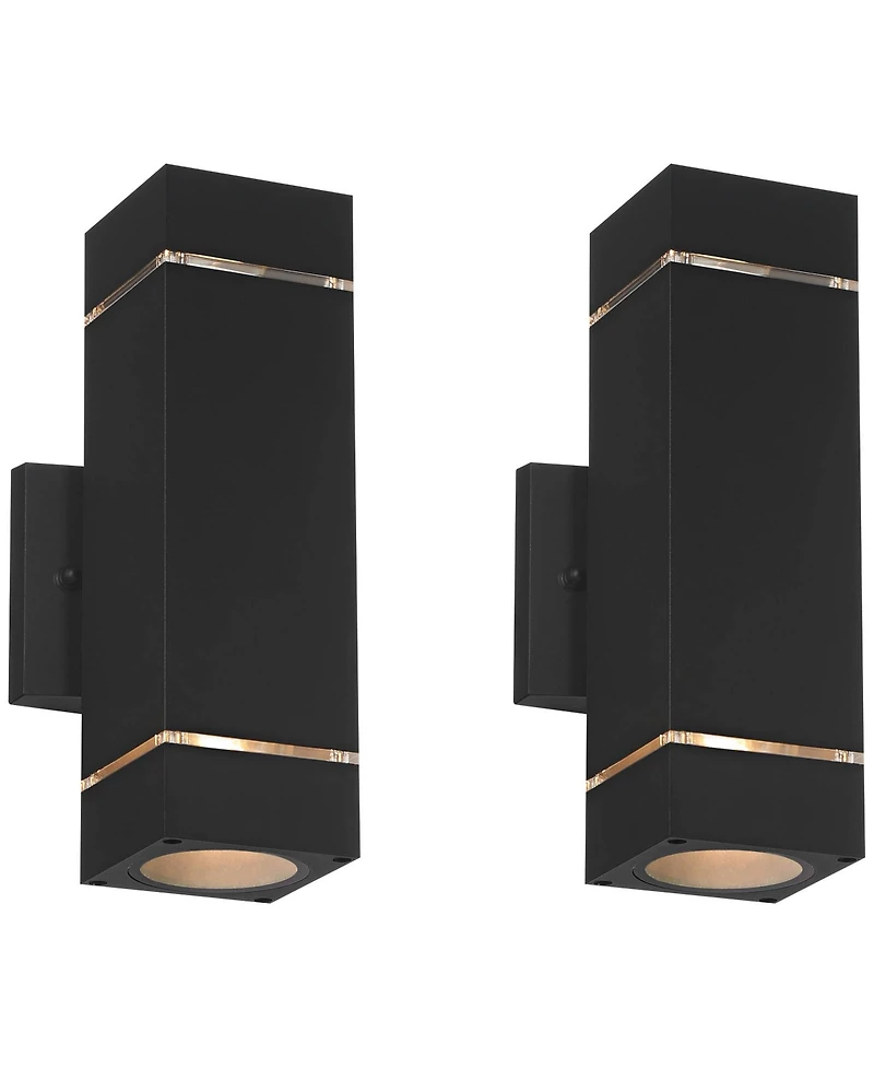 Possini Euro Design Skyridge High Modern Outdoor Wall Light Fixture Mount Porch House Set of 2 Up Down Aluminum