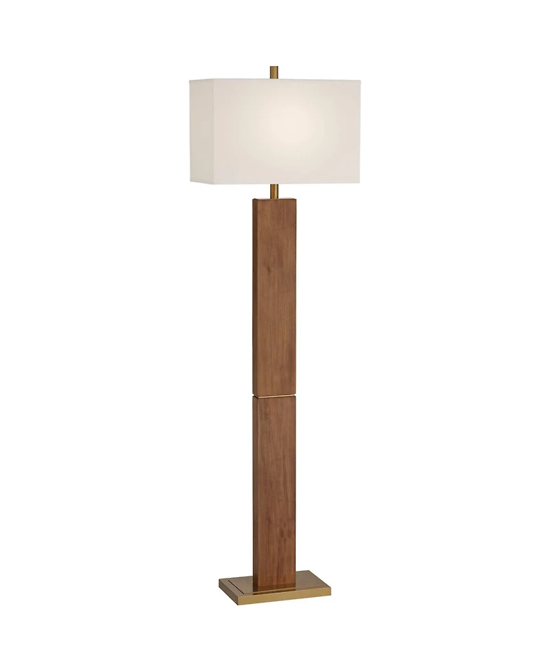 Bring a new sense of style to your decor with the Walnut Grove floor lamp. From the Possini Euro Design brand, the design features a vertical wood column base topped by a rectangular linen blend fabric lamp shade. Polished brass finish metal accents provide subtle contrast.