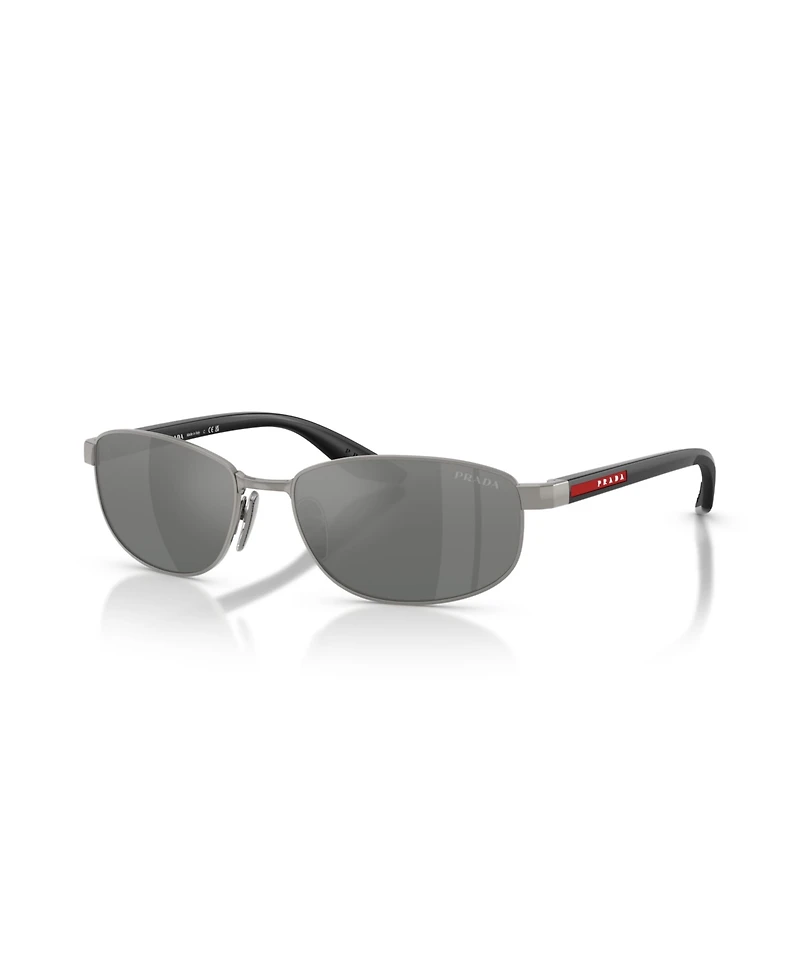 Dynamic and sophisticated, the Prada Linea Rossa Ps B53S sunglasses are crafted with lightweight metal and nylon temples for effortless wear. The oval-shaped frames feature soft, rounded edges for timeless versatility, complemented by a sleek grey finish. Mirrored grey lenses with gradient treatment provide advanced protection against intense light and glare while delivering a striking metallic effect. Complete with adjustable nose pads for enhanced comfort, these full-rim Prada Linea Rossa sunglasses are perfect for modern, everyday style.