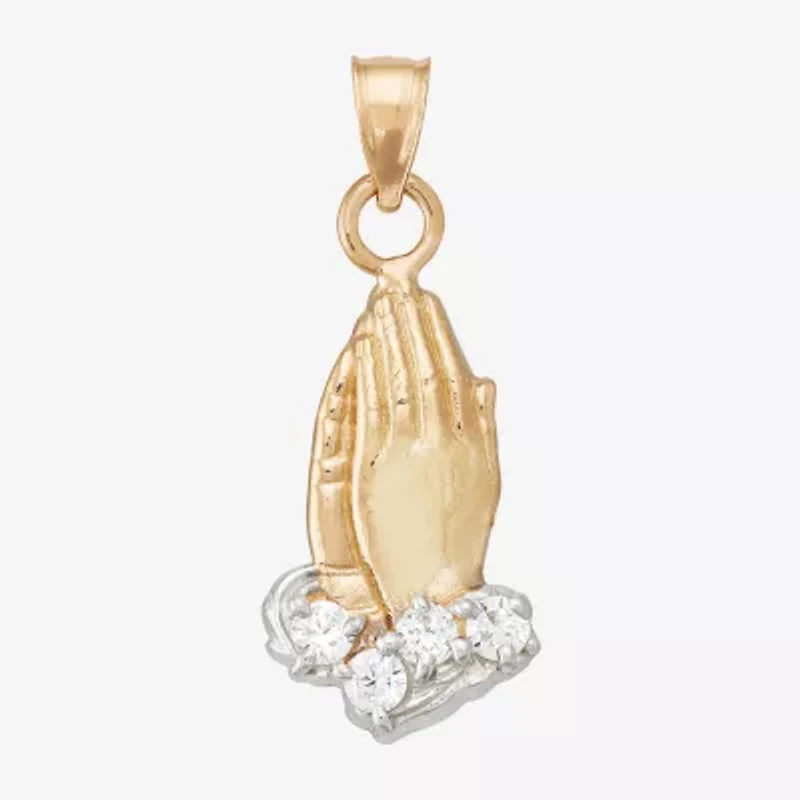 Praying Hands Unisex Adult White Cubic Zirconia 14K Gold Pendant