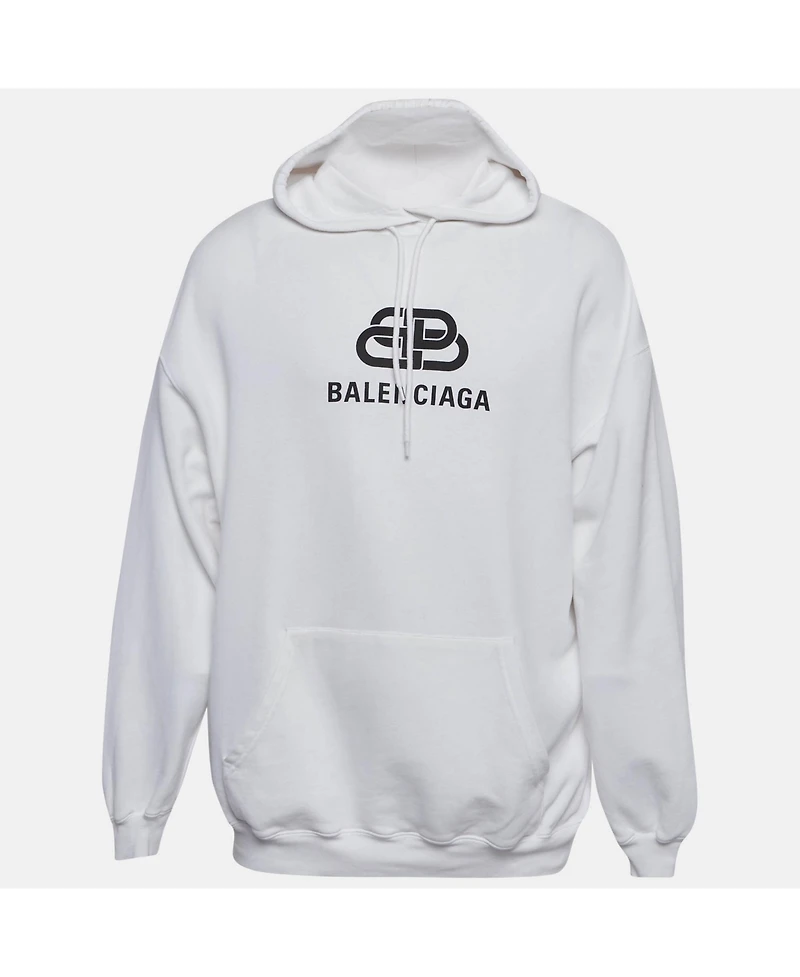 Pre-Owned Balenciaga Men's White Logo Print Cotton Oversized Hoodie in Franklin, TN