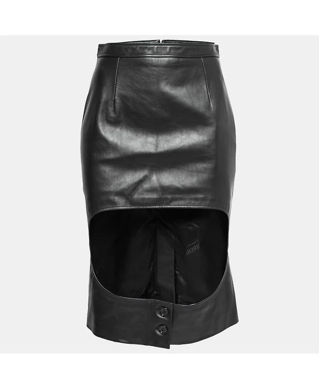 Pre-Owned Burberry Women's Black Leather Step-Through Pencil Skirt