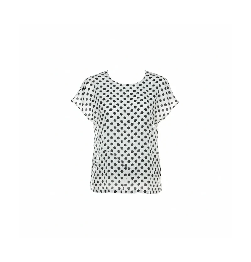 Pre-Owned Dolce & Gabbana Women's Monochrome Brushstroke Polka Dot Print Silk Blouse in Franklin, TN