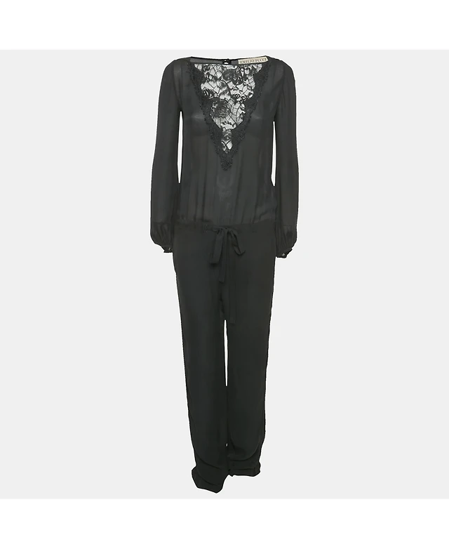 Pre-Owned Emilio Pucci Women's Black Lace Trim Silk Jumpsuit