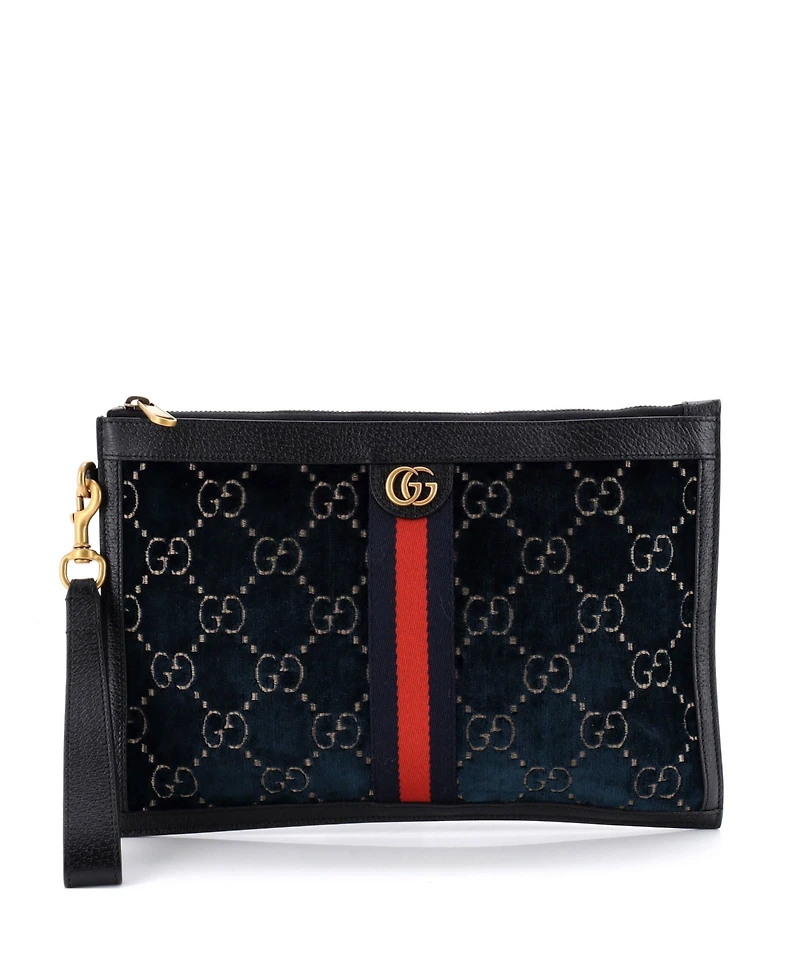 Pre-Owned Gucci Large Ophidia Zip Pouch Gg Velvet