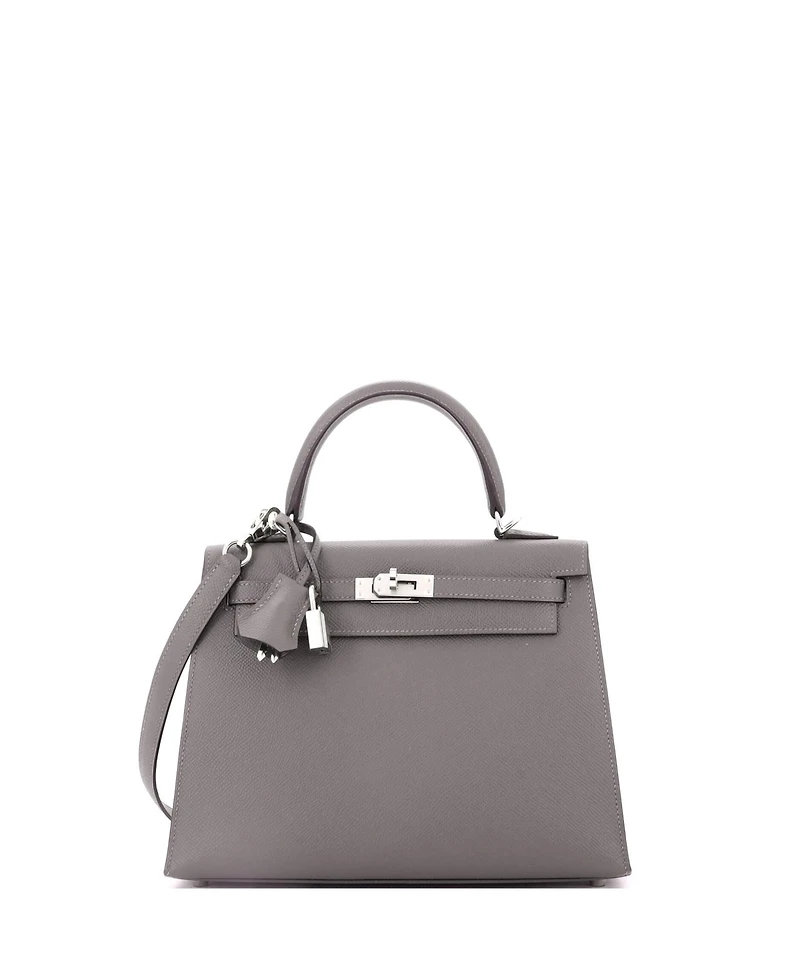 Pre-Owned Hermes Kelly 25 Handbag Grey Epsom with Palladium Hardware