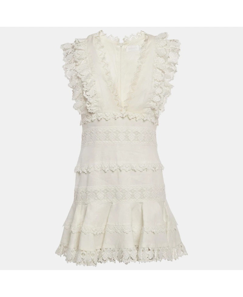 Pre-Owned Zimmermann Women's White Linen Wayfarer Flutter Dress