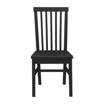 The traditional silhouette of this side chair is revamped with a sleek black finish, offering a modern twist on a farmhouse classic. Made of solid rubberwood for ensured strength and stability, the frame is also given a glossy lacquer coating for long term protection and shine. A high slatted back offers ample support and makes for a lovely accent piece in both contemporary and old timey cottage settings. Arrives in a set of 2 and supports up to 300 lbs each seat.