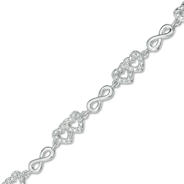 Previously Owned - 1/10 CT. T.w. Diamond Alternating Double Heart and Infinity Bracelet in Sterling Silver - 7.25"