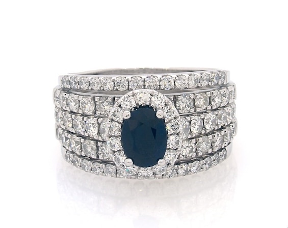 Previously Owned Oval-Cut Blue Sapphire & Diamond Bridal Set 2-1/5 ct tw 14K White Gold Size 8