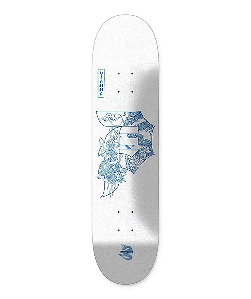 Honoring Brazilian team rider Giovanni Vianna with an 8.5" wide pro model, Primitive introduces the Ceramic skateboard deck with a 32" length and a custom 14.3" wheelbase. Inspired by fine china ceramic dishware, the board's bottom ply hosts a large