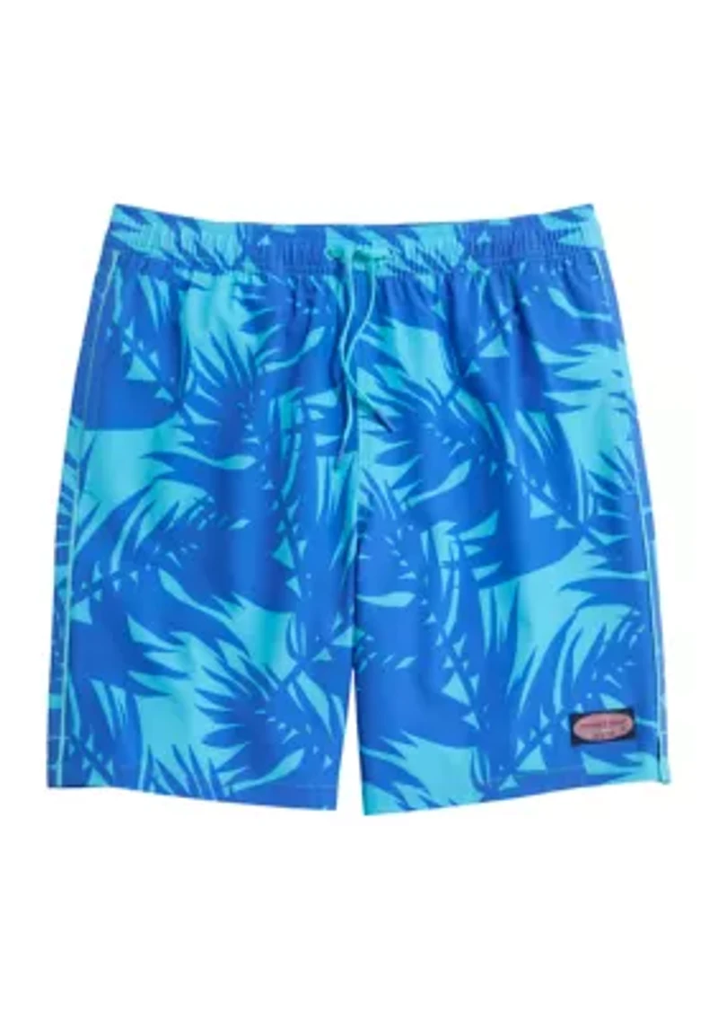 Covered in a silhouetted tropical print, these swim trunks from Vineyard Vines will be a summer staple. Elastic waistband Imported Product Specifications 7" Inseam Material & Care Polyester, spandex Machine washable