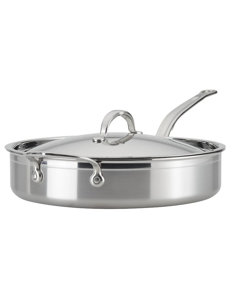 Push culinary boundaries with cookware innovation by equipping the kitchen with a Hestan ProBond stainless steel saute pan. Available in 2 sizes, ProBond's professional clad stainless steel saute pans are handcrafted in Italy using a tri-ply body and responsive pure aluminum core for optimum performance, maximum durability, and fast, even heat distribution. With wide surface area and vertical sidewalls, these versatile saute pans are ideal for searing, browning, simmering, braising, and one-pot meals. Ergonomic handles are secured with flush rivets to provide a firm, comfortable hold when cooking or serving. These durable saute pans are dishwasher safe for a quick cleanup and oven/broiler safe to 600° F for stove to oven cooking.