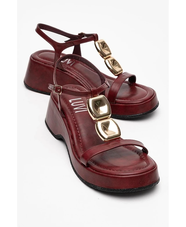 Forever & Always Shoes Lucia Leather Buckle Platform Sandal (Women)