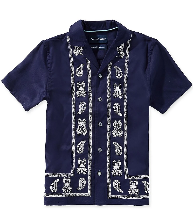 Psycho Bunny Big Boys Short Sleeve Luke Paisley Placement Print Woven Shirt in Franklin, TN