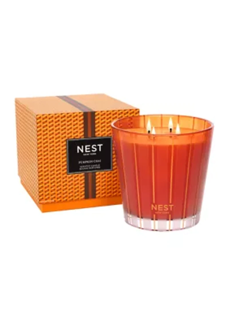 Create a cozy autumn ambiance with this exquisitely fragranced 4-wick pumpkin candle from NEST New York featuring a blend of wild pumpkin, spicy masala chai, cardamom, ginger, and cinnamon. Key notes: Wild Pumpkin, Spicy Masala, Chai Ginger Imported