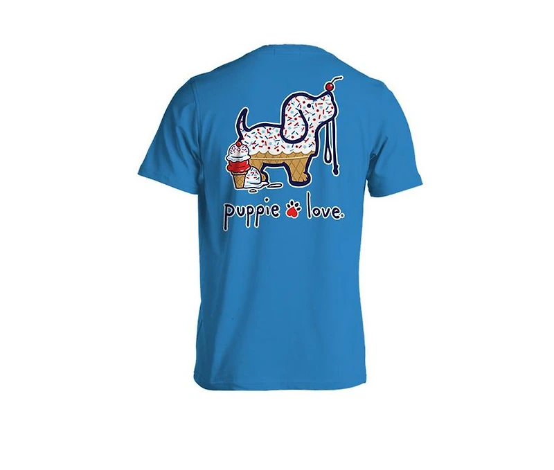 PUPPIE LOVE iris This is a fun and vibrant shirt that is perfect for any dog lover. The shirt is made from high-quality materials, ensuring durability and comfort. The shirt can be worn to any occasion, like a casual outing with friends.