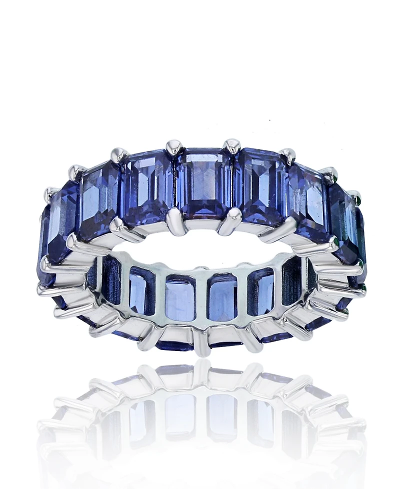 Purple Emerald Cut Cubic Zirconia Eternity Band Rhodium Plated Sterling Silver