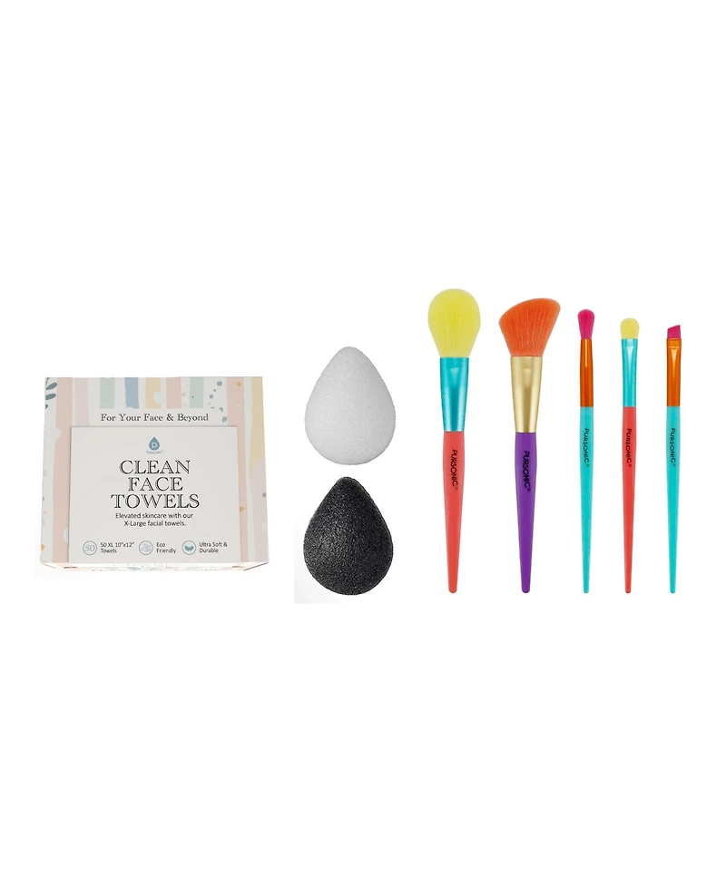Pursonic Flawless Skin & Makeup Prep Kit – Brush Set, Xl Clean Face Towels & Konjac Sponge