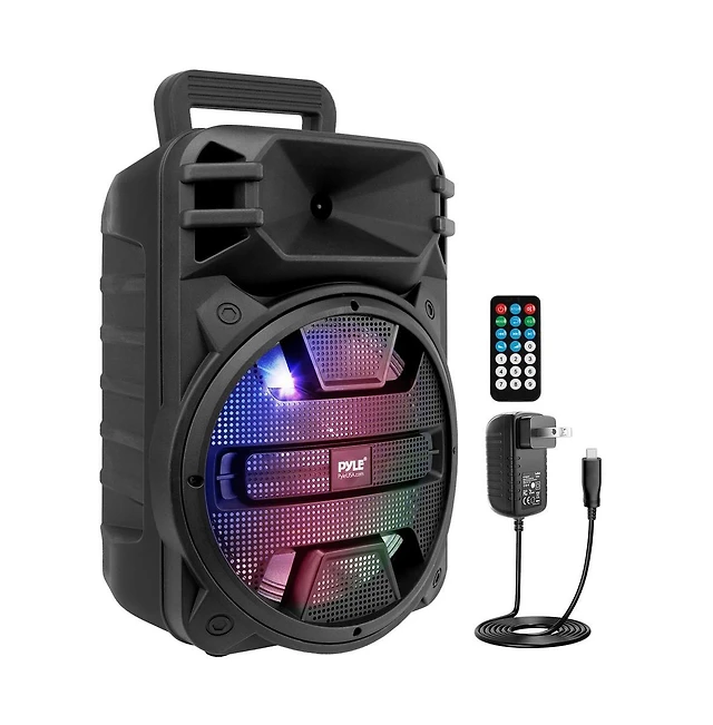 Pyle Bluetooth Pa Speaker & Microphone System - Portable Karaoke Speaker with Led Lights, Fm Radio & MP3/Usb Support