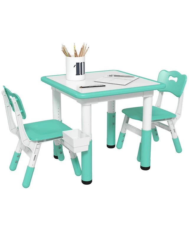 Qaba 3 Piece Height Adjustable Kids Table and Chairs for Daycare,