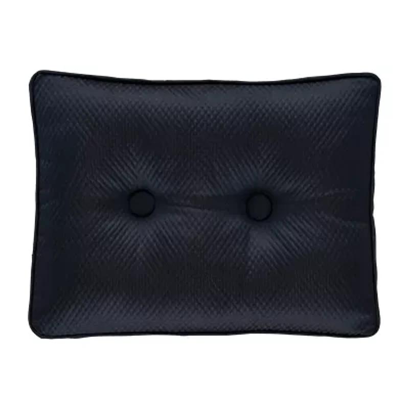 The Baylor boudoir pillow adds a tonal touch to the ensemble with its modern gusseted design. The rectangular pillow is made with a plush navy-blue matelass fabric, finished with two satin buttons in the center, and coordinates beautifully with the luxurious Baylor bed set.